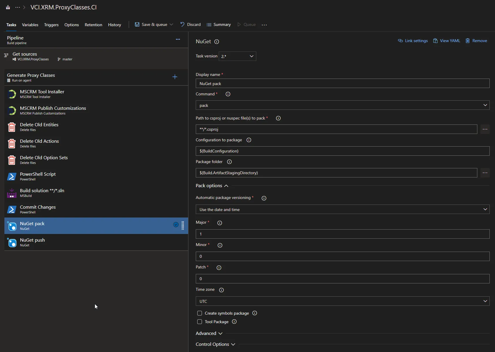Now we need to pack it up for NuGet. I chose to use some automatic versioning so it gets pushed as a prerelease: