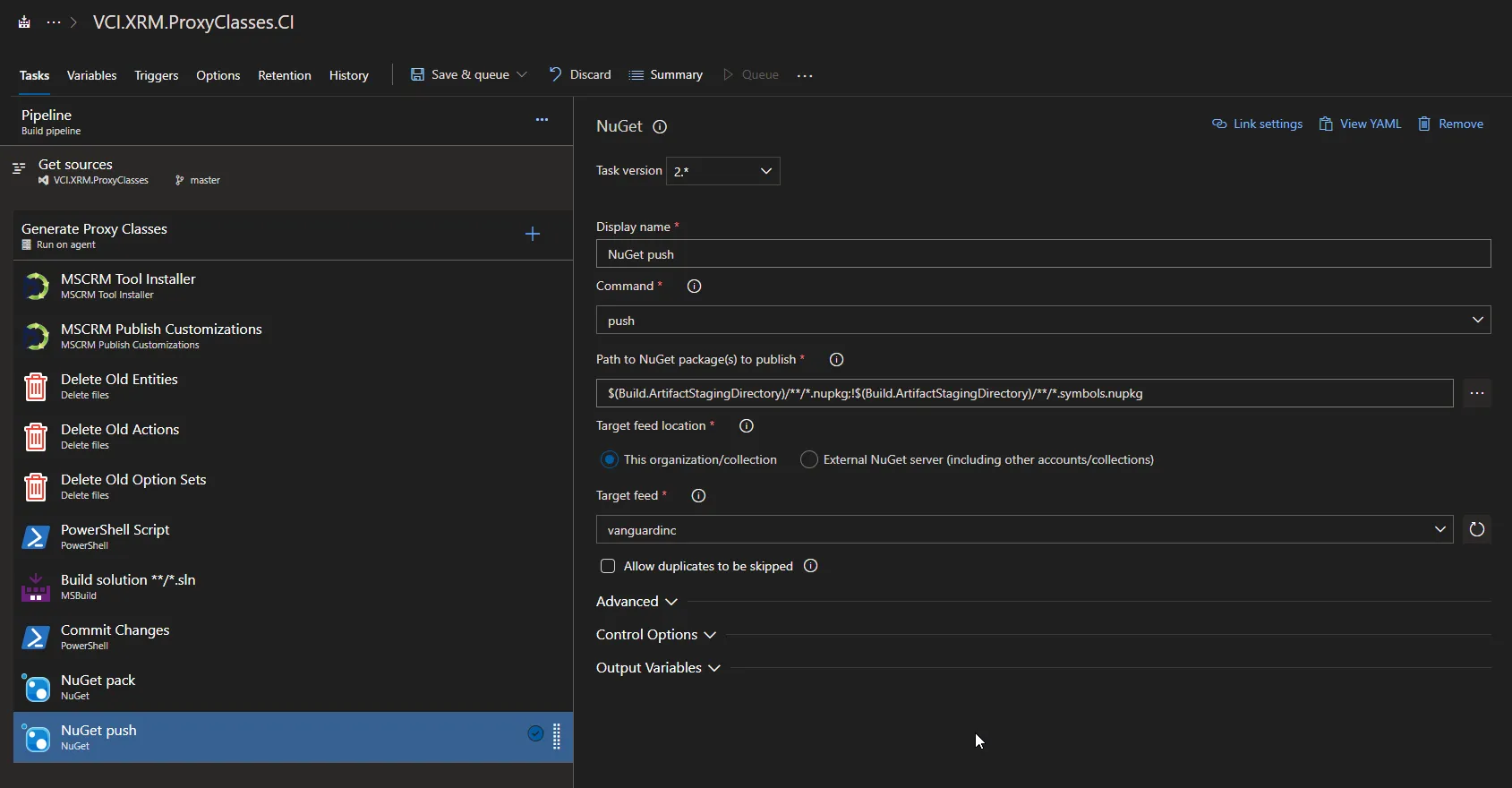 Finally, add a NuGet push task. Make sure to choose the correct target feed!